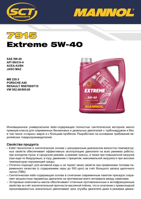 7915 MANNOL EXTREME 5W40 5 л. Синтетическое моторное масло 5W-40